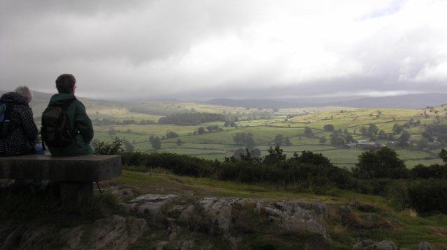 Our four mile morning walk took us up the road to Orrest Head, through Elleray Wood and on a steep climb to a breath-taking circular viewpoint – except, it was raining all the way, and the only visibility was a brief glimpse of sun on the Yorkshire moors to the east.