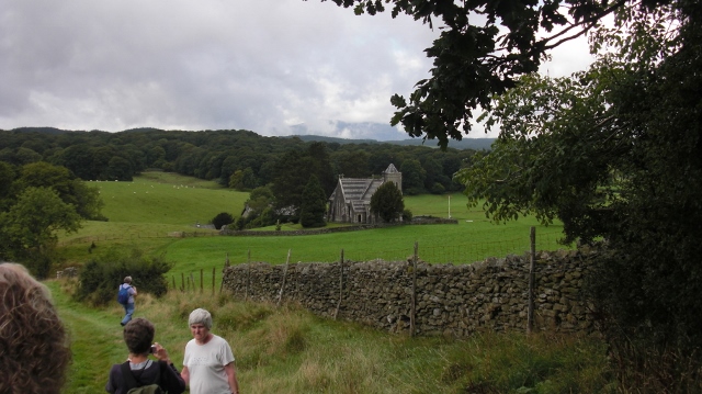 An early start the next day for the Bowness Ferry crossing and a six mile walk up the hill, looking back over Lake Windermere. We passed a distinctive church on the way to Hill Top and Beatrix Potter House.