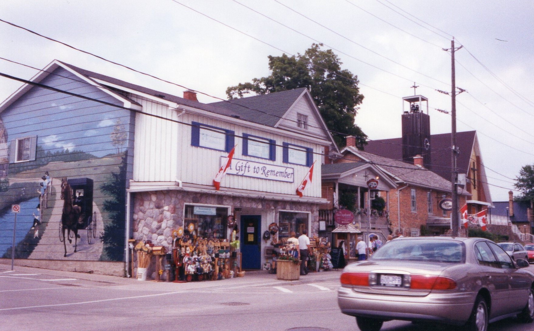 In Mennonite country a pacer rolls with camel-like gait, pulling a buggy through the only covered bridge left in Canada. We pass another horse and buggy on the main road – trotting conventionally this time – driven by round-faced ladies clothed in long black skirts and stiff black bonnets. St. Jacobs is a quaint tourist town with shops spiralling upward inside a disused silo. The Mennonites are renowned for their exquisite patchwork, and I cannot resist a token, which conveniently drains my purse of all but a handful of Canadian pence.