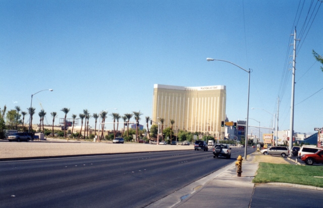 I leave the group eating all they can for $15 in the Luxor and explore this Egyptian look-alike, then wander on to Mandalay and back again through endless lines of slot machines and croupiers by their tables. The thousands of gambling machines and tables are the only common denominator in these Vegas hotels, each one aping a place or city in typical exaggerated American fashion. Astonishing -and no expense spared.