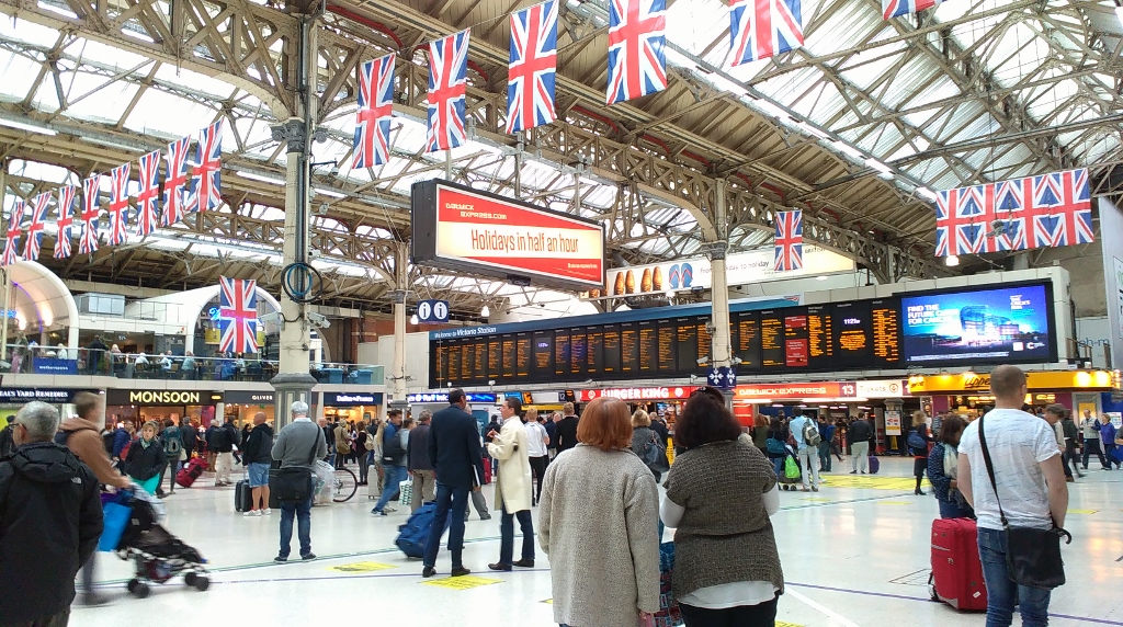 And then we amble through the thin Saturday evening crowds to catch the bus back from Hyde Park to Victoria Station. I think the bunting must be celebrating the fact that our Queen has now reigned longer than any other monarch in British history.